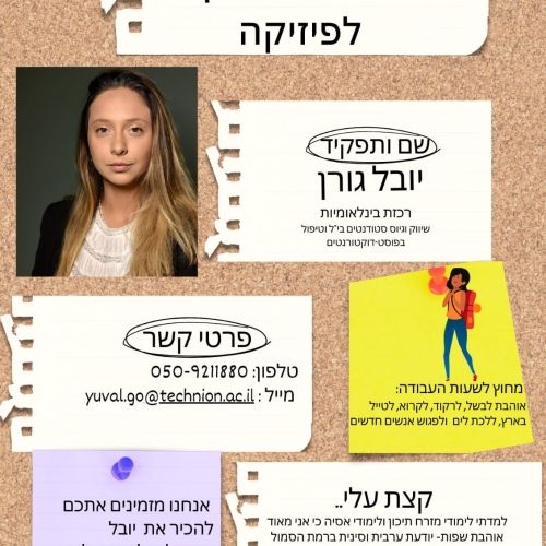 The Physics Department at the Technion qualifies students at all academic levels, starting with undergraduate studies up to post-doctorate. Our goal is to educate students for broad-minded and creative scientific thinking.